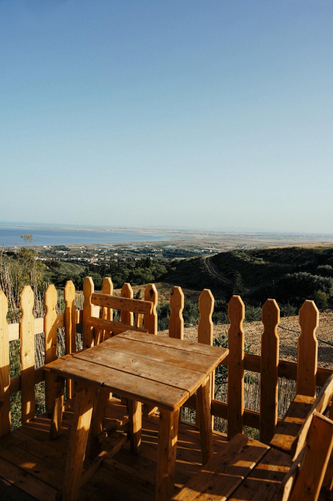 Cabane en bois avec salle d’eau privative, d’une capacité maximale de 4 personnes, idéale pour couples, familles ou amis souhaitant vivre une expérience complète en pleine nature à Ghar El Melh Outdoors.